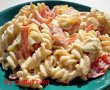 Fierbeti pastele si le scurgeti. Taiati legumele in forma dorita, preferabil mai mari. Nu e obligatoriu sa puneti exact ceea ce am scris eu.