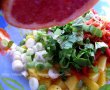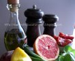 Eu am făcut o greșeală cu acestă salată şi nu a avut efectul pe care îl așteptam. Am lăsat frunzele de busuioc prea mari şi ni s-au cam lipit de cerul gurii. Data viitoare voi avea mai multă grijă : fie să le tai mărunt de tot ca să nu se simtă , fie le voi lăsa întregi şi le voi îndepărta înainte de servire. Să aveți poftă !!!