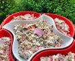 Se toaca si mararul, se adauga maioneza si condimetele, plus ardeii kapia copti taiati marunt.
