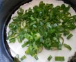 Se spală ceapa verde, se șterg codițele și se taie rondele.