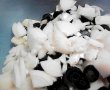 Peste ei se adauga maslinele taiate rondele,ceapa taiata dupa preferinte julienne sau cubulete,si ouale fierte tari.Se adauga dupa gust sarea,piperul,uleiul de masline si otetul(sau zeama de lamaie) si salata este gata.