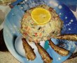 Se pun toate într-un vas adânc și se amestecă cu maioneză.