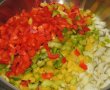 Asadar, samfaina, este un sos de legume. Prima data, samfaina, a fost pregatita doar din ardei si rosii, dar cu timpul s-au adaugat si vinete, zucchine, ceapa si usturoi.