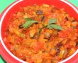 Se curata, se spala si se taie marunt ceapa, ardeii si usturoiul. Dupa care se pun toate la calit, in ulei de masline. Apoi se spala si se taie marunt, vinetele. Dupa ce ceapa, usturoiul si ardeii s-au calit putin, impreuna, se adauga vinetele si se mai lasa la calit putin, impreuna. Se spala si se taie marunt si zucchinele, dupa se pun peste cele de sus. Se lasa la calit o idee, dupa care se adauga sosul tomat. Dupa gust se adauga sare, piper si zahar. Dupa se pune capacul pe tigaie si se lasa totul la fiert in sosul tomat, pana cand sosul scade consistent, iar legumele sunt moi. Se poate servi cu carne sau simplu.