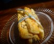 Am impartit coca in 4 sferturi si am intins din fiecare bucata cate un dreptunghi pe care l-am taiat fasiute. Am uns fiecare fasiuta cu ou batut cu lapte, iar deasupra am presarat chimen, mac sau cascaval ras. Am copt pana cand s-au rumenit frumos.