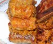 Se face un amestec din 3 linguri pasta de tomate, apa si vinul si se toarna in cratita pana acopera varza.
