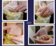 Desfacem frunzele de varza ( sa fie varza de foi, nu cotoroasa ) si le stoarcem bine de zeama. Luam cu mana putina carne pe care o plasam in partea cu nervuri mai mari , astfel incat cand rulam sa terminam cu partea cea mai fina a foii de varza. Impaturim frunza ca in imaginile prezentate mai jos ( sau cum crede fiecare ca e mai bine….)