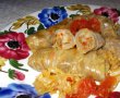 Taiem frunzele de varza de pe cotor si le oparim in apa cu sare si 2 linguri de otet balsamic 2-3 minute. Le scoatem si le lasam la scurs.