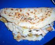 Pentru umplutura: Cartofii se taie si se prajesc.Se face gratar din piept de pui.Se taie ceapa, usturoiul, castravetii murati.Varza se taie si se amesteca cu putina apa(cam 3 lg) si sare dupa gust.