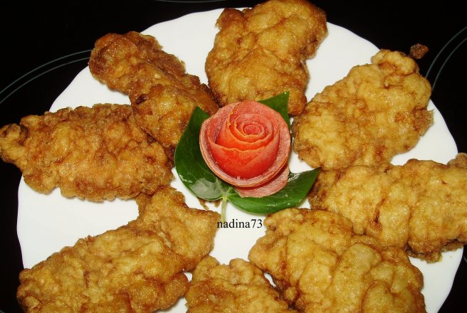 Se dau bucatelele de muschi prin faina apoi prin ou ,din nou prin faina si apoi din nou prin ou (eu asa obisnuiesc sa le dau de 2 ori) apoi se prajesc in ulei foarte bine incins la foc potrivit
