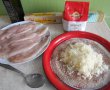 Se ia fiecare bucată de file, se dă prin amestecul de pesmet, cașcaval și condimente, pe ambele fețe. Se presează puțin, pentru ca ”învelișul” pieptului de pui să fie destul de gros.