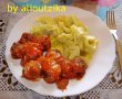 Se asaza pe farfurie, iar lanaga ele se pune sosul si chiftelutele. Pofta buna!