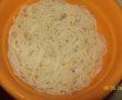 Spaghetele se fierb conform instructiunilor de pe ambalaj. Se scot in strecuratoare si se trec pe sub jet de apa rece si se lasa la scurs.