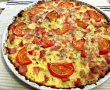 Luam o tava, o ungem cu unt si presaram pesmet pe margini si pe fund. Adaugam in ea cam 1/3 din compozitie si intindem pe fundul tavii.