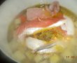 Curatam legumele, apoi cartofii, prazul si tulpina apio le taiem cubulete, iar morcovul rondele. Indepartam cotorul si semintele ardeilor copti si ii taiem fasii.