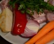 Se curata spuma formata, se adauga legumele taiate, se potriveste de sare si se lasa in continuare la fiert la foc moale ( asta pentru a iesi supa cat mai limpede).