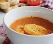 Legumele se taie cubulete de ce dimensiune vreti si se pun in oala impreuna cu leiu, se calesc putin,apoi se toarna 1.5,2 l apa, sare si piper si se lasa sa fiarba pana se inmoaie legumele. Cand legumele sunt fierte se pun intr-un blender si se paseaza, se pun inapoi in supa. Rosiile decojite se pun si ele in blender si se paseaza si se adauga supei. Se fierbe supa 10 minute.
