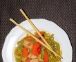 Tot acum am adaugat sosul de soia si sosul dulce-iute, am amestecat cat sa se intrepatrunda aromele si am oprit focul.