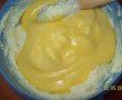 Albusurile de la oua se bat spuma si se adauga galbenusurile, se omogenizeaza bine.