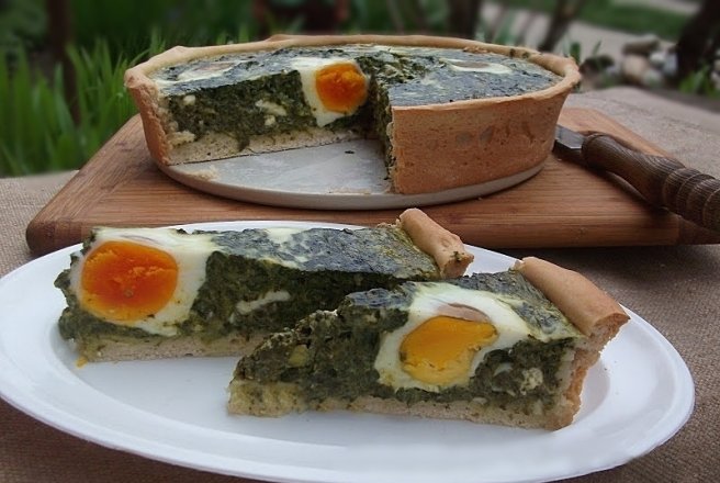 Se inteapa din loc in loc cu furculita si se toarna compozitia de cu spanac.