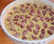 Asezam aluatul in tava unsa cu unt  turnam umplutura si nivelam.