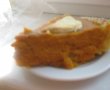 Scoatem aluatul, intindem o foaie cu care imbracam si peretii vasului in care vom coace tarta.Facem gaurele cu furculita. Punem piureul de dovleac, deasupra am pus si aluat in forme de inimioare, si dam la cuptor pentru aproximativ 30-40 de minute, cuptorul fiind foarte incins dinainte de la coptul dovleacului.