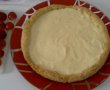 3. Am incins cuptorul la 180°.Am intins aluatul,pe o hartie de copt,cu ajutorul sucitorului,incercand sa fac o forma cat mai rotunda.Am pus aluatul intr-o tava de 26 cm diametru cu tot cu hartia de copt si cu ajutorul furculitei am facut marginea.Am dat la cuptor pentru 45 de minute.