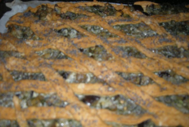 Intr-o tava 40/30,tapetata cu hartie de copt,punem o foaie de aluat.