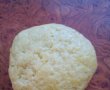 Se formeaza o bila din aluat, se acopera cu folie transparenta si se da 1ora la frigider. Apoi se intinde aluatul cu o grosime de 1/2 cm.