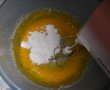 Mai intai am batut frisca lichida cu zaharul vanilat si am dat-o la frigider. Intr-un castron, am pus galbenusurile si am adaugat treptat zaharul pudra, mixand pana acestea au devenit ca o crema.