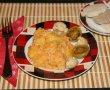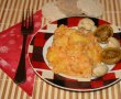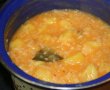 Dupa ce a fiert orezul si cartofii potrivim de sare daca mai este cazul, apoi adaugam cateii de usturoi maruntiti.