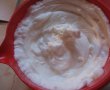 Galbenusurile impreuna cu apa si cu zaharul le batem bine cu mixerul.