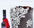 3.Cand este topita ciocolata, o intindem uniform pe bucata de hartie cerata pregatita anterior,apoi prindem foaia de capete si o lipim pe lateralul tortului.Incercam sa fixam prima data hartia la baza tortului si apoi cu miscari usoare preseam coala de hartie in sus pe tort, ca sa faca priza buna.