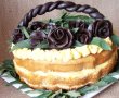 Continuam pana la ultimul blat. Punem intr-un pos cateva linguri de crema si facem o bordura tortului.