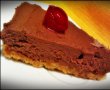 Topiti ciocolata in bain marie. Puneti ricotta intr-un bol si amestecati cu mixerul pana se inmoaie, dupa care adaugati ciocolata topita, amestecati in continuare si puneti compozitia in alt bol, sau folositi un alt bol ptr a amesteca cu mixerul smantana pana devine densa si apoi puneti zaharul pudra si mai amestecati putin, trebuie sa fie ca o frisca. Apoi puneti frisca cate putin la compozitia de ciocolata si amestecati usor. Puneti crema peste blatul de biscuiti si intindeti pana e uniform. Puneti tortul la frigider ptr cel putin 2 ore.