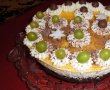 Cu 125 grame de frisca bine batuta impreuna cu zaharul pudra se orneaza dupa gust .Se orneaza si cu ciocolata rasa si cu ce va face voua placere ,eu am ornat cu boabe de struguri ,mingiute de ciocolata si stelute de Craciun.