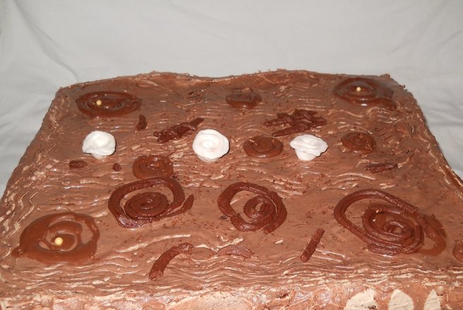 Asamblare-pe un platou asezam prima foaie de blat o insiropam-adaugam crema de ciocolata(din care am oprit un pic) si dam la rece cca 1 ora dupa care adaugam crema de mascarpone-a 2 foaie de blat-insiropam-ungem blatul cu crema ramasa de ciocolata si dam la frigider cateva ore,