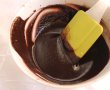 Turnam compozitia intr-o tava unsa cu putin ulei si tapetata cu hartie de copt pe fund si pe margini si o dam la cuptorul incalzit la 180 de grade, pe ultima treapta de jos. Peste cca 20 de minute sau cand agitam usor tava iar compozitia nu se misca, nu mai ``tremura`` o mutam pe treapta din mijloc pentru inca 5 minute sau pana trece testul scobitorii.