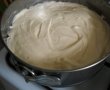 Forma in care am copt blatul,o imbracam in folie alimentara,punem blatul,insiropam putin apoi turnam crema deasupra,nivelam suprafata si lasam la frigider pana a doua zi cand ornam tortul si servim.