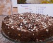 Intr-o tava detasabila am pus hartie copt si am turnat compozitia, niveland foarte bine. Deasupra am presarat bucatele mici de ciocolata alba si neagra.