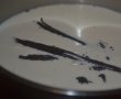 Laptele impreuna cu smantana le-am pus intr-un vas pe foc, am adaugat vanilia si pastaile. Cand laptele a dat semne ca incepe sa fiarba am oprit focul. Dupa 20 minute am scos pastaile din lapte.