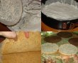 Punem un blat de albus cu mac, apoi crema de cacao, punem blat de cacao, crema de vanilie si tot asa alternam.