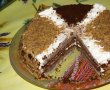 Pe deasupra am ornat cu frisca, nuca macinata si cu marginile de la blatul de cacao care mi-au ramas, pisate bine pana s-au facut ca o pudra, deoarece am taiat din ele ca erau putin mai mari fata de blatul de albus cu mac. Sa arate bine trebuie sa fie egale.