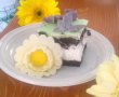 -Dupa o ora am scos-o si lucrat-o cu zahar pudra cat cuprinde,am devenit ca o painica,asa cum se vede in poze,am impartit-o si am colorat-o cu diferite culori,galben pentru flori galbene,violet din albastru si rosu pentru fluturasi,dar mult am lasat verde si alb.