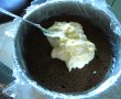 Se curata forma si se tapeteaza cu folie de plastic alimentara.Se aseaza prima jumatate de blat in forma,apoi se pune crema de vanilie,apoi al doilea blat si se aseaza pe blat crema de visine.Se da la frigider pentru cel putin 4 ore.