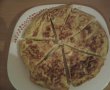 Amestecam cu oule si aceasta compozitie o punem din nou in tigaie la prajit aranjand pe margini cu o lingura incat sa iasa ca o tarta.