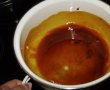 Intr-o cratita se caramelizeaza cele 5 linguri de zahar. Peste zaharul caramelizat se pune crema iar apoi in mijloc se toarna compozitia de blat