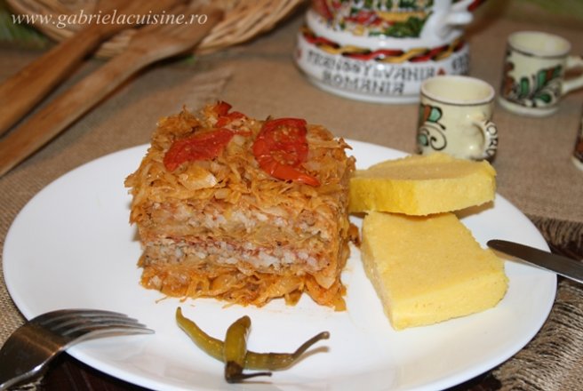 Alternam iar cu un strat de varza apoi iar carne si la sfarsit varza!