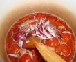 Varza am curatat-o bine si am taiat-o fideluta. Intr-o cratita am incins untura apoi am adaugat rosiile si ceapa, calindu-le cateva minute. Dupa aceea, am pus putin cate putin varza amestecand pana ce se omogenizeaza cu rosiile si ceapa, alaturi de 1 pahar cu apa. Dupa gust punem sare si piper, dar si bulionul, sa fie mai colorata :). Am introdus cratita la cuptor si am lasat pana ce aceasta prinde crusta.