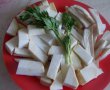 Între timp se curăță morcovii, țelina și hreanul și se spală bine. Hreanul se taie fâșii, morcovul se taie rondele iar țelina cubulețe.
